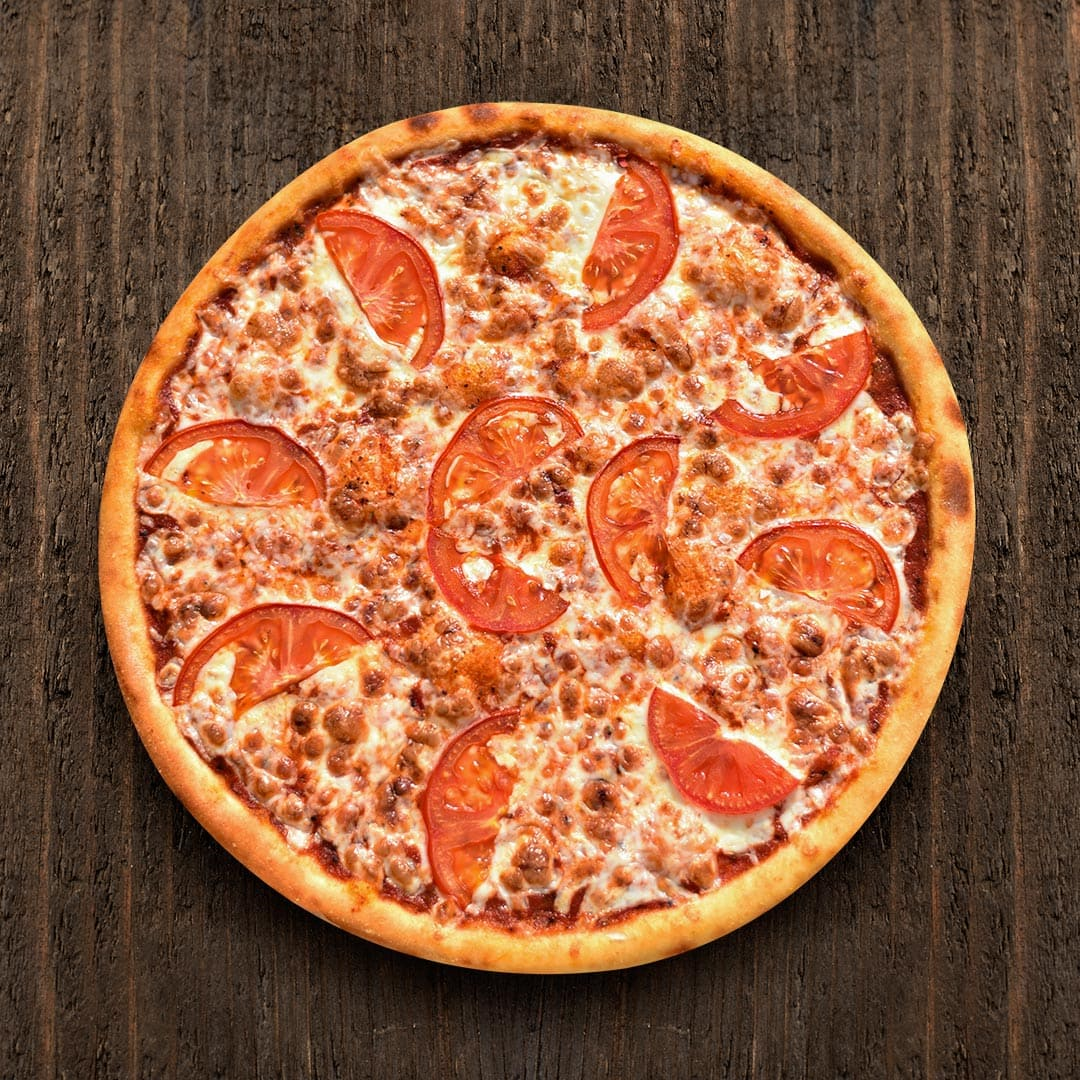 Пицца на основе фирменного томатного соуса, с сыром «Моцарелла», со сладкими помидорами, с добавлением душистого "Орегано". (625 / 940 гр.)